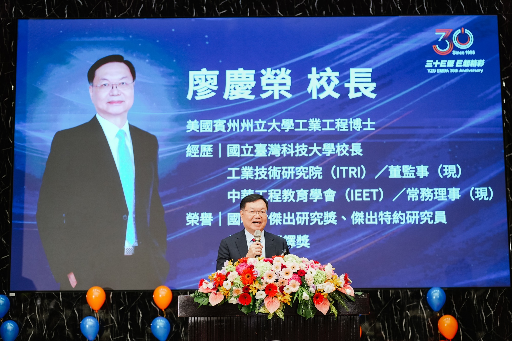 (廖慶榮校長稱讚元智EMBA開創在職教育新典範/照片由EMBA提供)