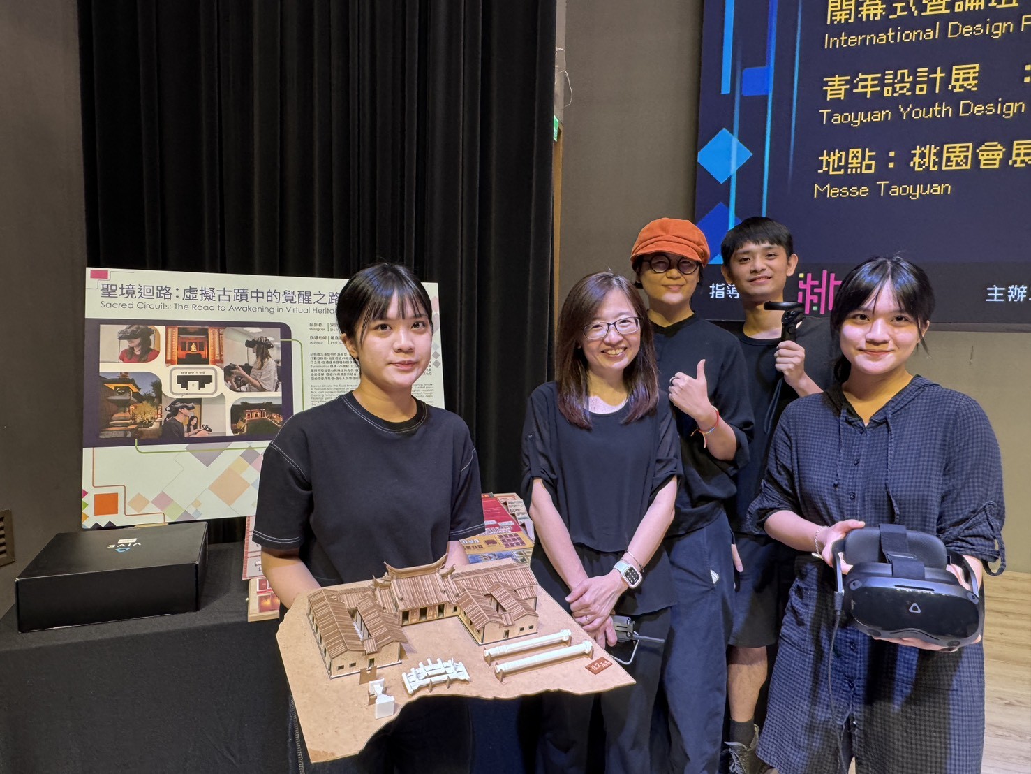 (大二學生宋詩媛與宋詩雅設計作品以桃園大溪齋明寺為原型,融合文化古蹟,展現沉浸式創作成果/照片由本報訊提供)