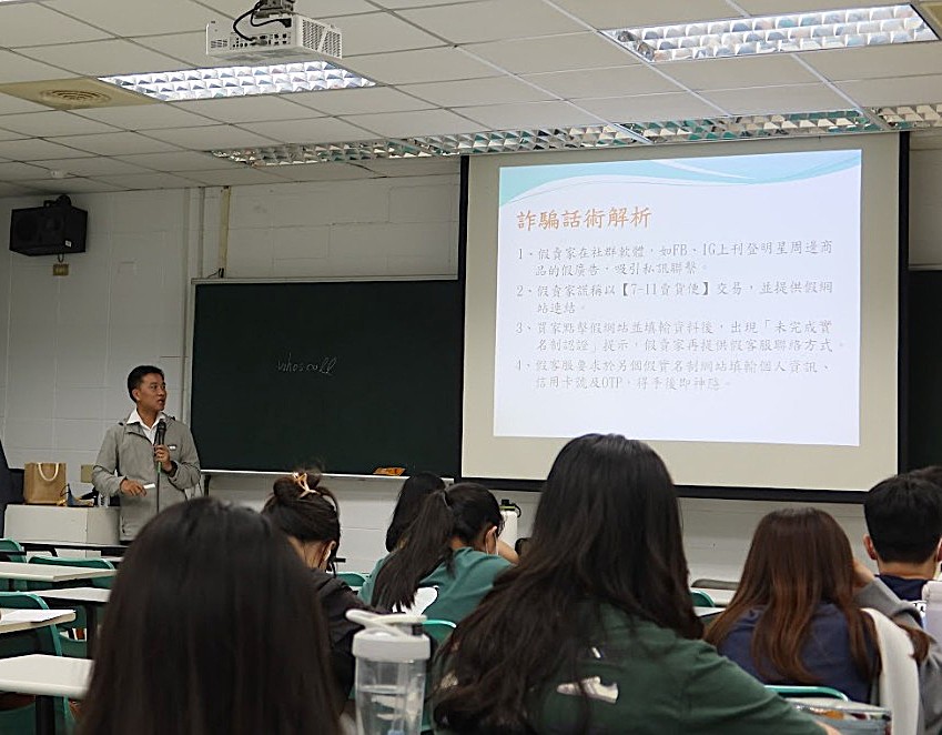 (兆豐銀行資深專員詹詩涵蒞校進行「看穿騙局 以金融及投資詐騙案為例」專題演講/照片由林惠芳提供)