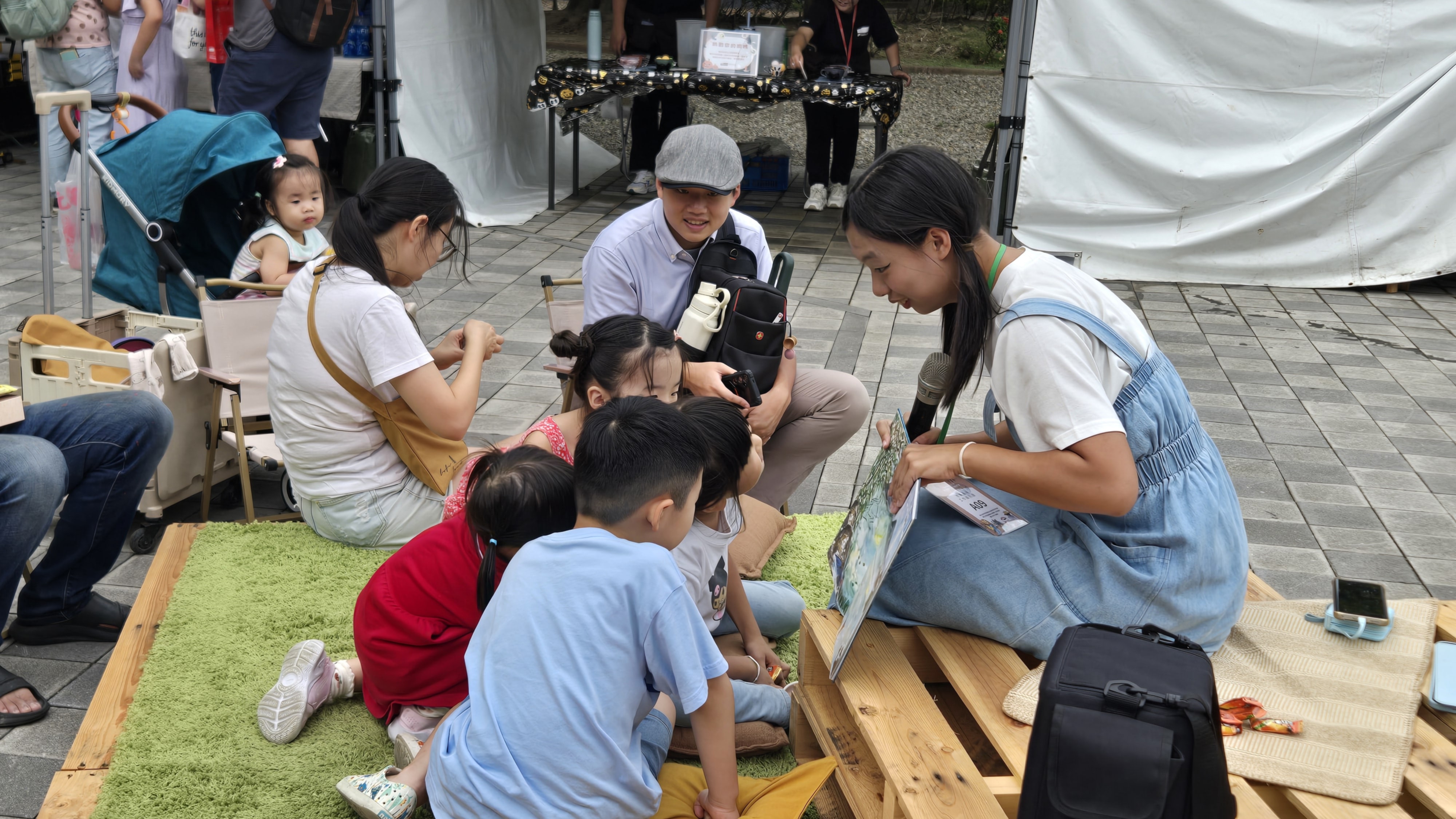 兩日的活動,由元智大學中語系劉賾菲、護理系邱子柔擔任講述者,分別以桃園作家黃淑貞、劉憬樺創作的繪本《蝴蝶結》與《埤塘奶奶說再見》為主題,為現場親子帶來溫馨感人的在地故事。邱子柔分享心得時表示,看到孩子們睜大眼睛、全神貫注地想像故事畫面,我感到非常有成就感。這次的講故事經驗讓我學會如何與孩子互動,也懂得如何讓故事更生動有趣。