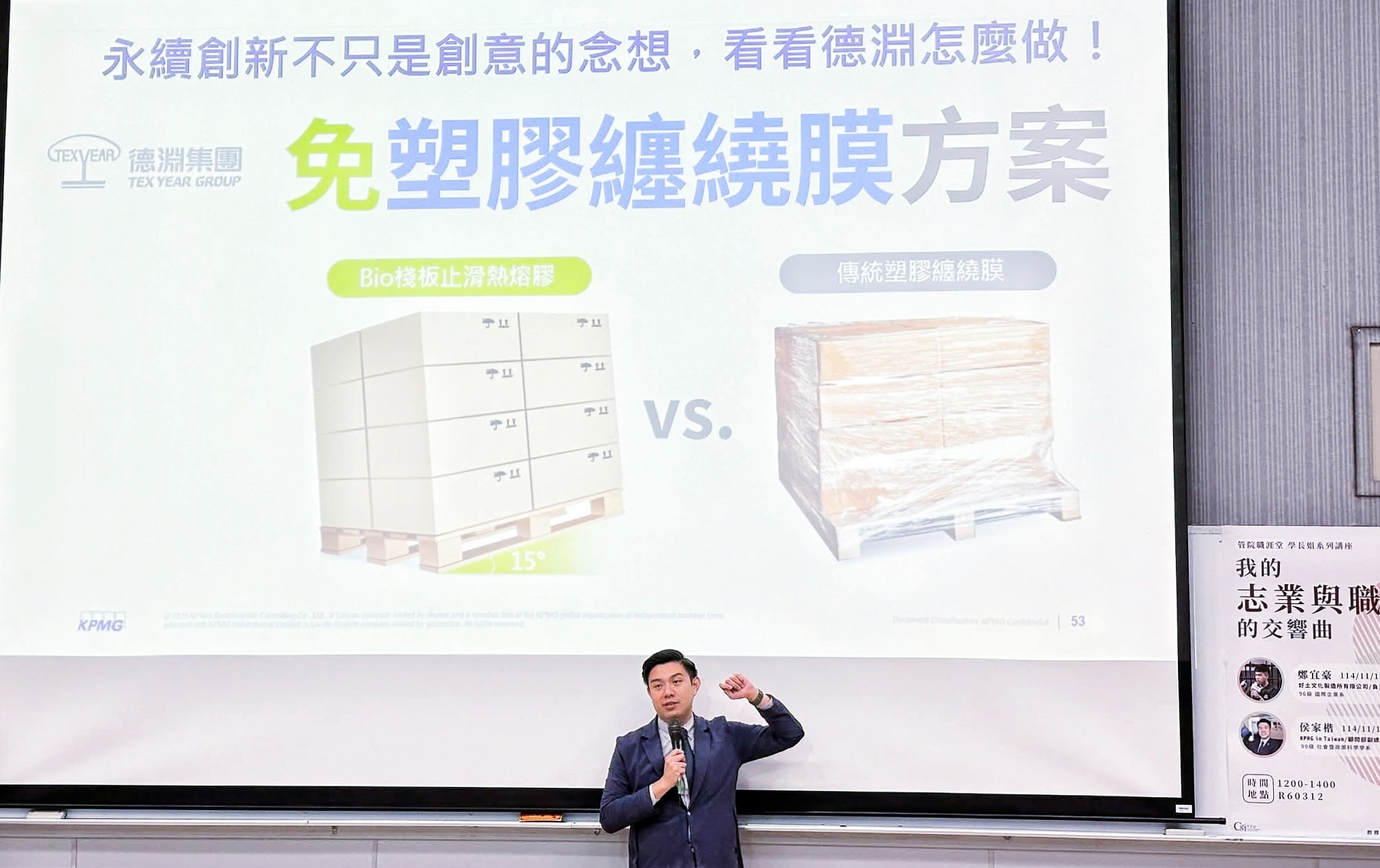 畢業後,侯家楷進入四大會計師事務所,在社會企業、社會影響力與永續創新部門任職,協助企業面對全球永續議題的快速變動。他在講座中指出,永續已不再是一股流行,而是所有產業都必須面對的現實;它更像是一種語言,是未來所有職能與產業都必須理解與掌握的基礎能力。