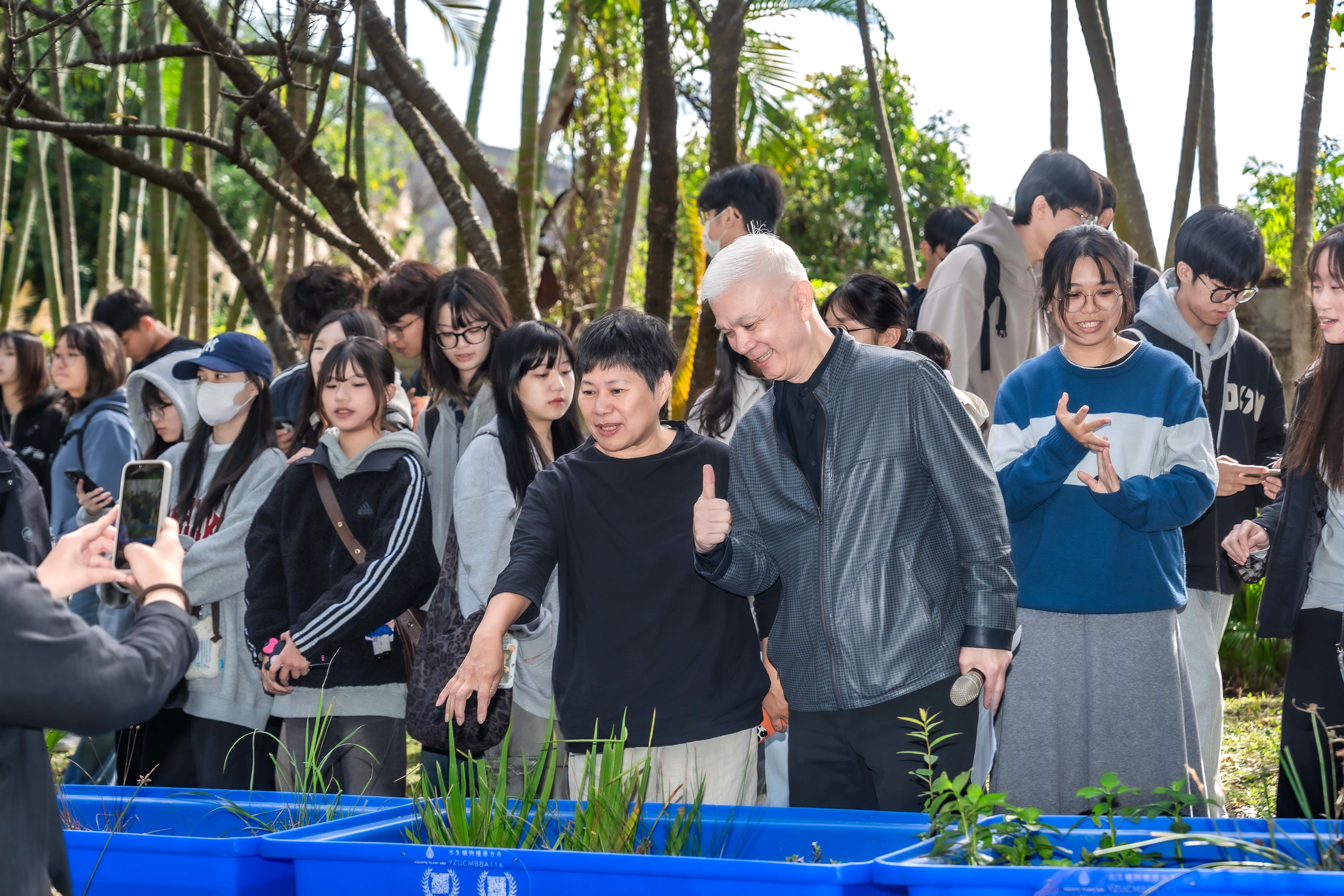 此外,該計畫亦結合校內跨領域資源,由化材系王清海教授團隊協助水質監測與數據管理,為復育工程建立科學化管理模式。黃敏萍強調,水生植物種原方舟不僅是一門課程成果,更是一個可長期運作的永續教育平台,未來將持續推動並擴展至周邊社區與學校,建立區域性的水生植物保育網絡。