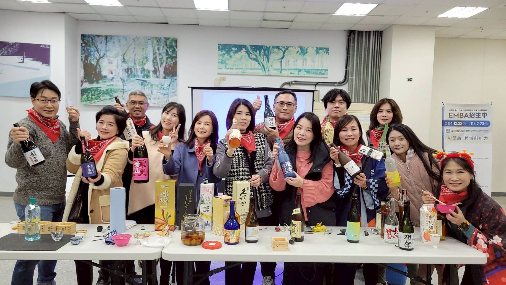 元智大學管理學院 EMBA 日前在六館一樓「玻璃屋」舉辦「清酒文化交流聚會」,由「智能化企業管理」課程授課業師高仁山發起,並與 EMBA 聯誼會樂活社共同策劃,吸引逾百位師生與校友熱情參與。活動以清酒文化體驗為媒介,結合課程精神與生活情境,展現元智 EMBA 強調「走出教室、多元共學」的學習特色。
