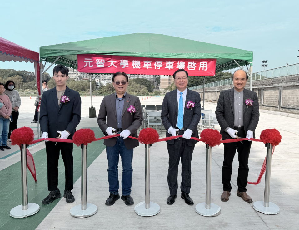 元智大學為改善校園周邊交通秩序並提供學生校內停車需求,自114年12月獲准後推動機車停車場工程,近日完工,並於115年2月26日(星期四)上午舉行啟用典禮,同步開放東泰街側門通行。典禮由桃園市政府交通局張新福局長蒞臨祝賀,校內多位主管與師生代表共同出席,見證校園交通建設的重要里程碑。