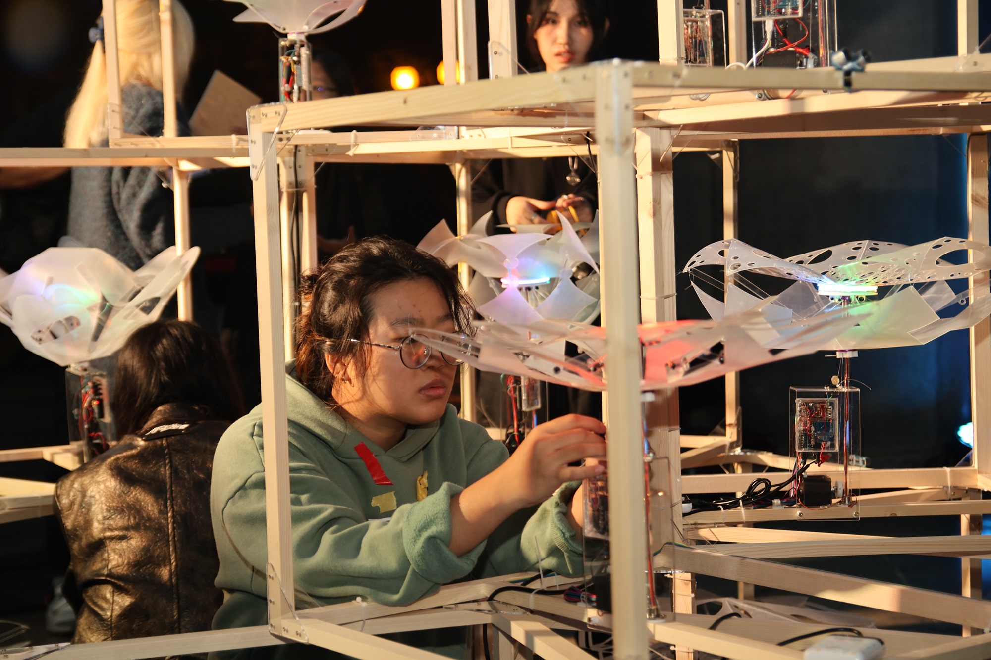 在課程規劃上,學生從基礎能力扎根開始,透過大一AI數位人文應用課程,建立互動影像、創意程式與AI創意應用基礎;再依創作方向進一步學習生成式影像、參數化設計與數位製造等內容;大三則結合互動科技裝置與專題整合,將AI、設計、空間、影像與感測互動實際應用於創作與實作之中。希望培養的,不只是會使用AI工具的學生,而是能主導AI創作、整合設計思維與科技應用的未來創意人才。