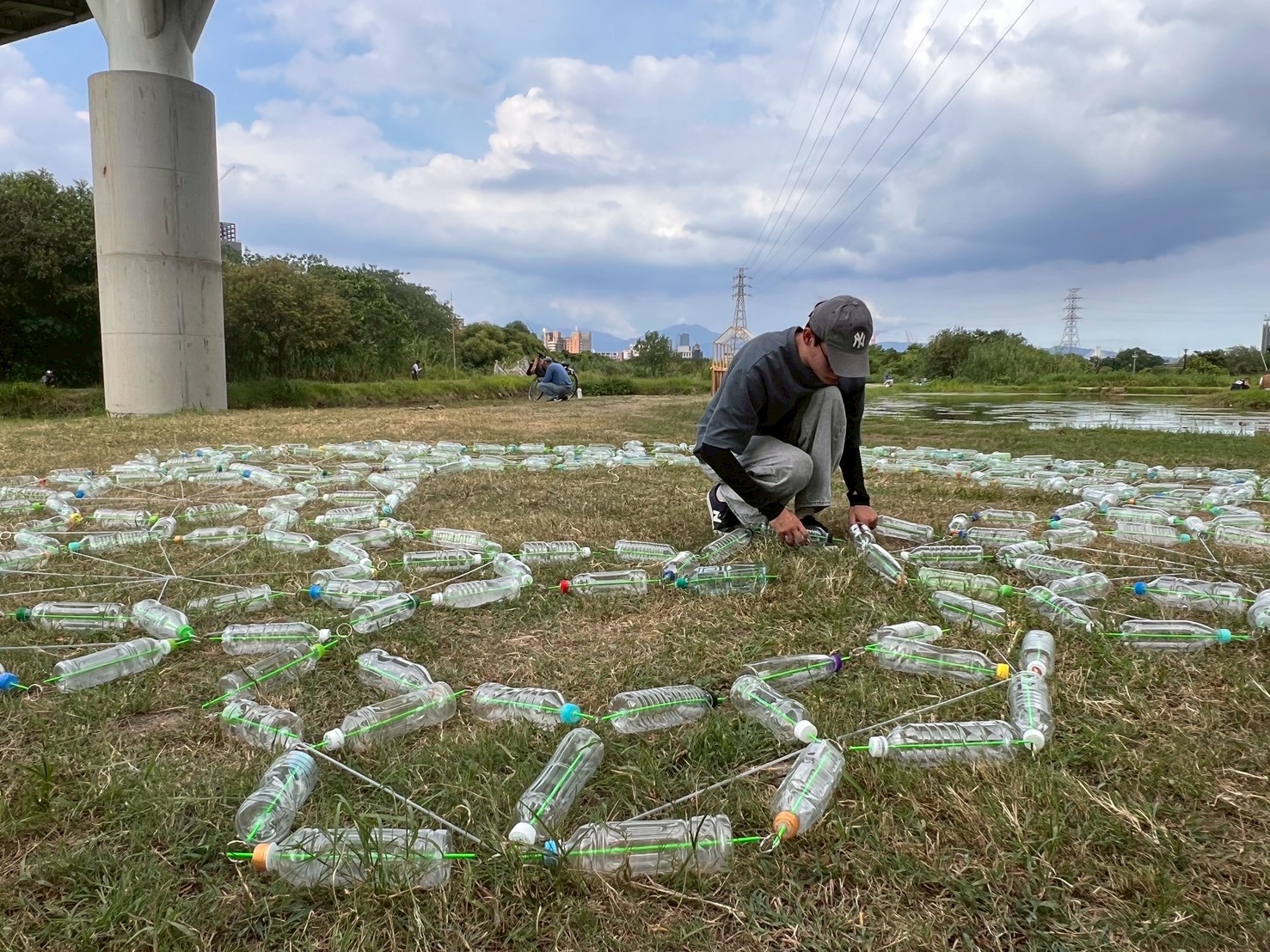 此次作品自構思到成形歷時數月,元智學生從暑假開始透過校內清潔人員協助蒐集逾600個寶特瓶,經過清洗、穿洞、密封、連結與現地安裝等繁複步驟完成。團隊並與濕地志工協力合作,透過勞動與實作,體驗環境藝術的挑戰與意義,將藝術行動轉化為理解自然的方式。